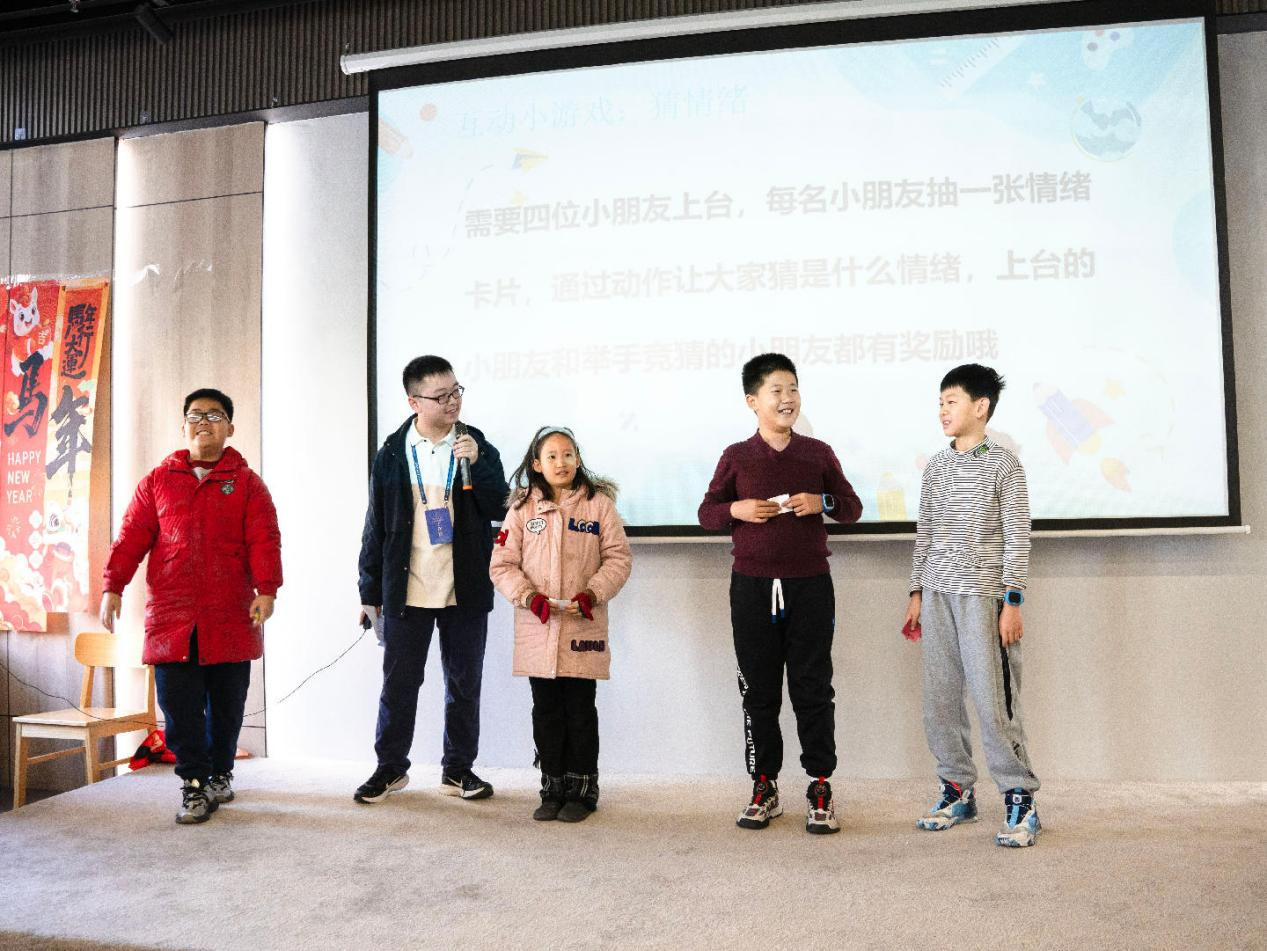 活动中,山东师范大学心理学专业2024级本科生曲厚安以《做情绪的小主人》为主题,为小朋友们带来了一场轻松而富有启发的心理讲座。讲座中,“猜情绪”互动游戏迅速点燃现场气氛。参与者通过肢体动作、面部表情演绎喜悦、焦虑、委屈等多种情绪,其余小朋友化身“情绪侦探”抢答猜测。夸张的表演引发阵阵欢笑,在轻松愉悦的氛围中,小朋友们不仅学会了识别情绪的外在表现,更体会到情绪表达的多样性与复杂性。