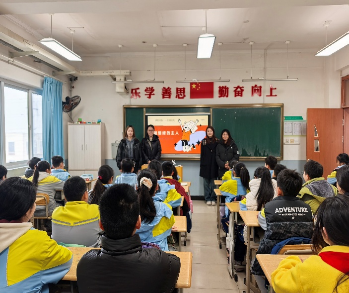 课堂上,志愿者们以《做情绪的主人》为主题,通过“小美考85分闷闷不乐”“小明踢球失误不敢尝试”两个生动案例,引导同学们思考情绪对行为的影响,迅速调动起大家的探索兴趣,让课堂在轻松自然的氛围中展开。