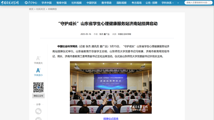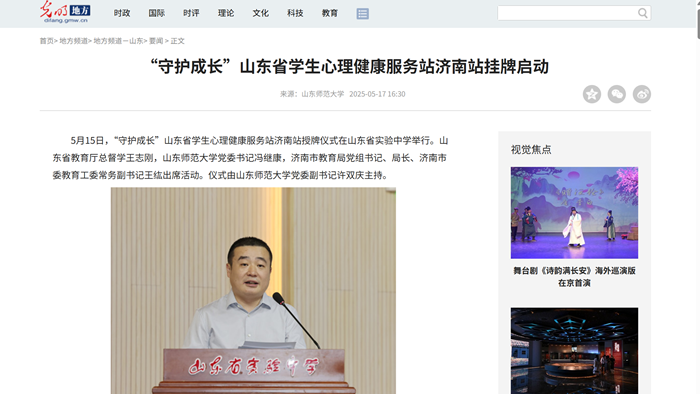 【光明网等】构建“大心理健康”格局!山东省“守护成长”学生心理健康服务站(济南站)授牌